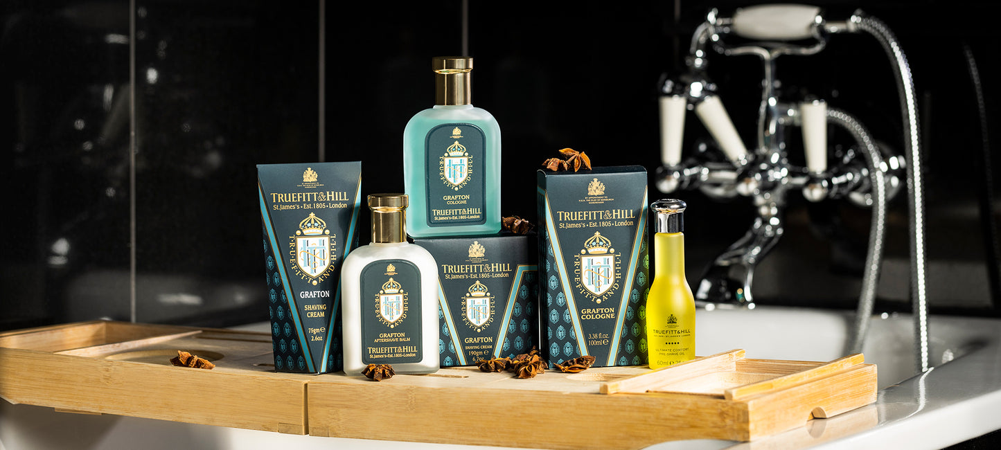 A sophisticated fragrance for men of distinction, Grafton blends top notes of basil, bergamot, lavender and anise with a dry, spicy floral heart of carnation, cinnamon and geranium. Powerful base notes of leather, sandal, tonka and amber boldly ground this refined aroma. For more on the scent profile, see our Grafton Cologne.
